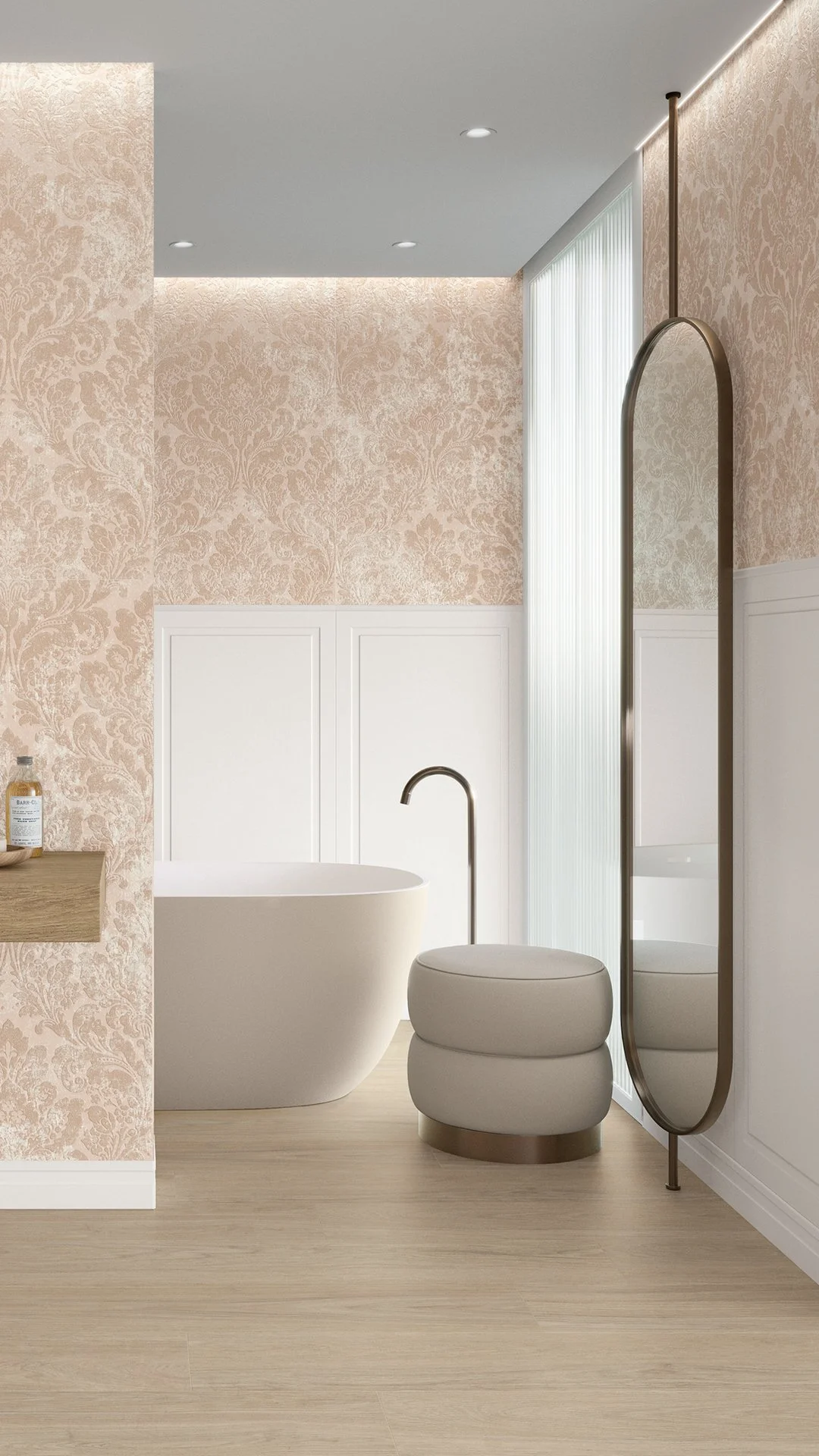 Create truly unique and inviting spaces by combining shaker-style panelled tiles with beautifully embossed wallpaper-style ceramics. This blend adds texture and character, giving your rooms both elegance and a distinctive charm.