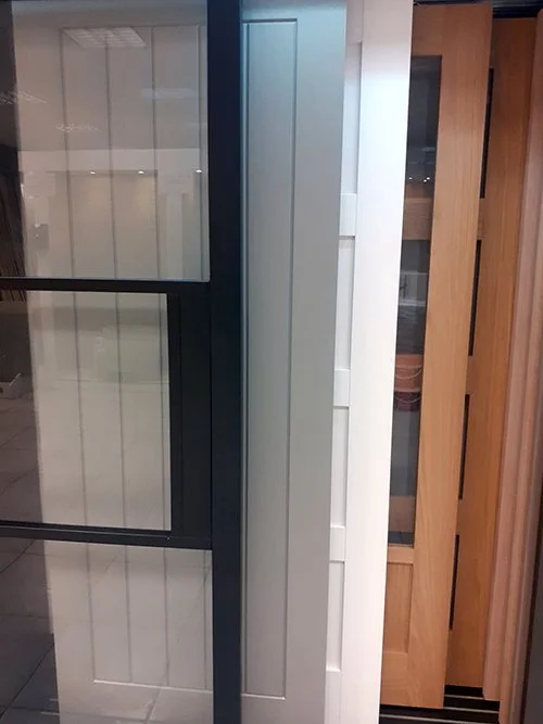 Matching door hardware also on display alongside an extended range of interior Oak, White and Coloured doors.