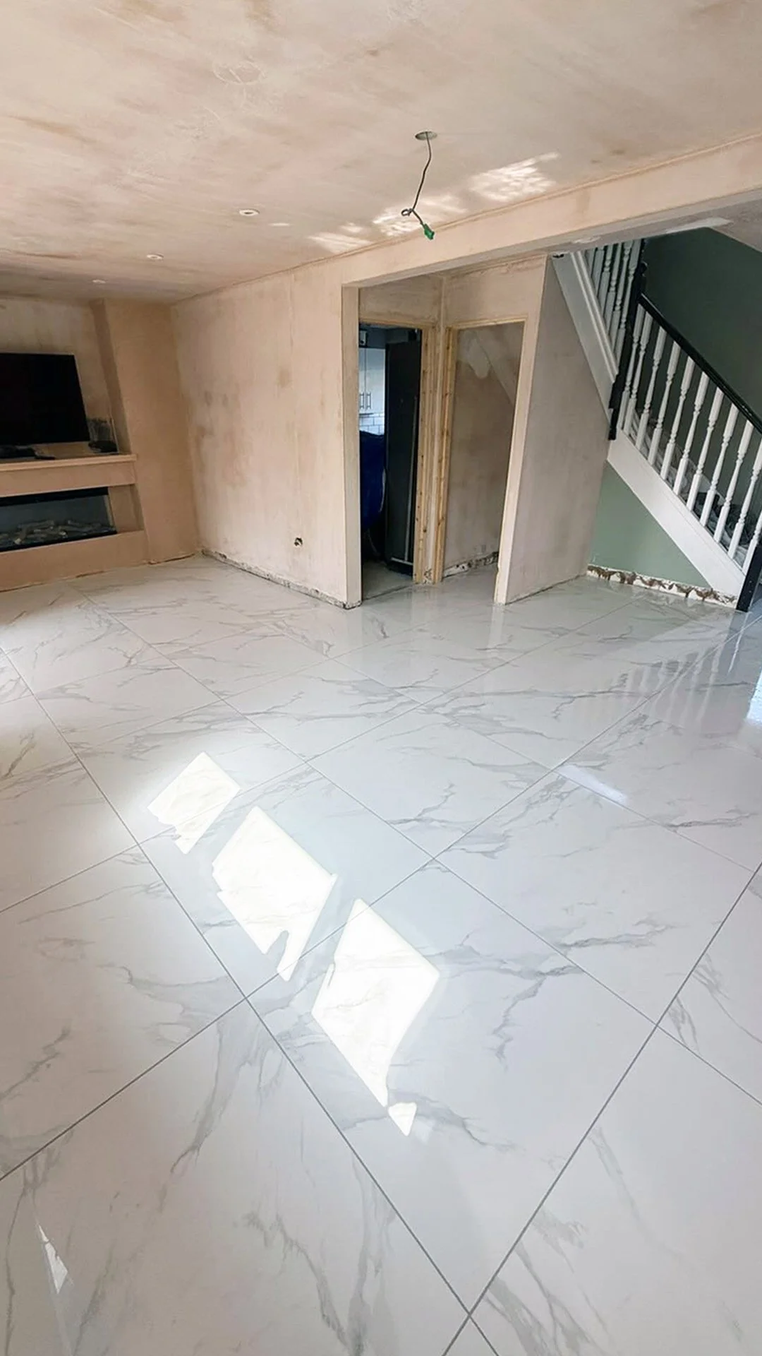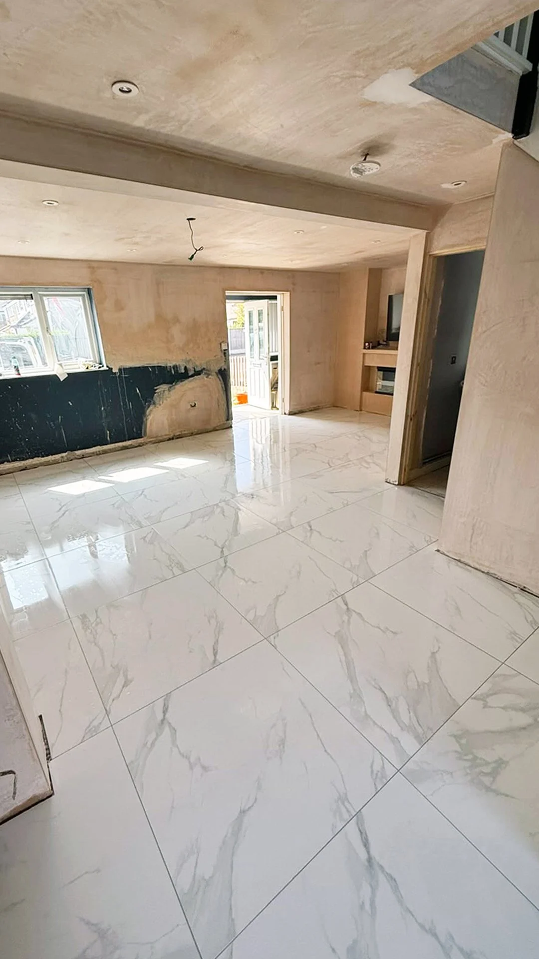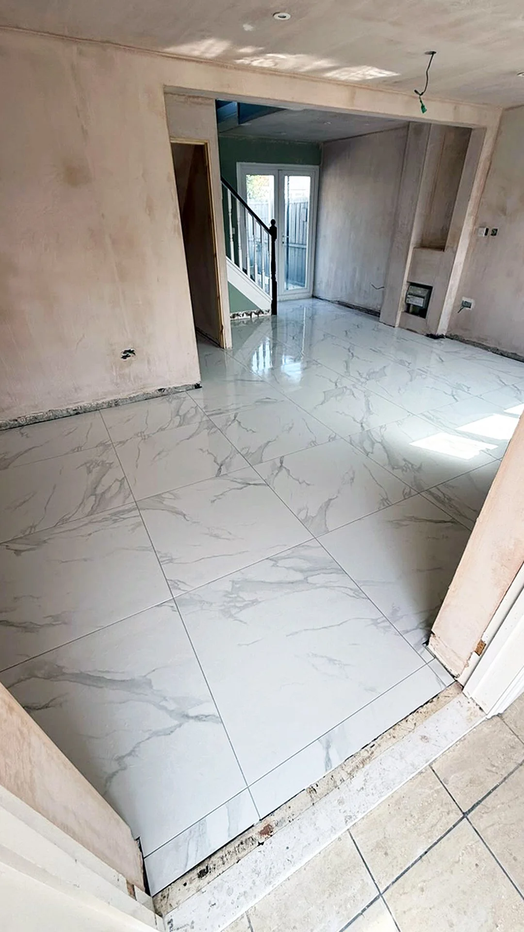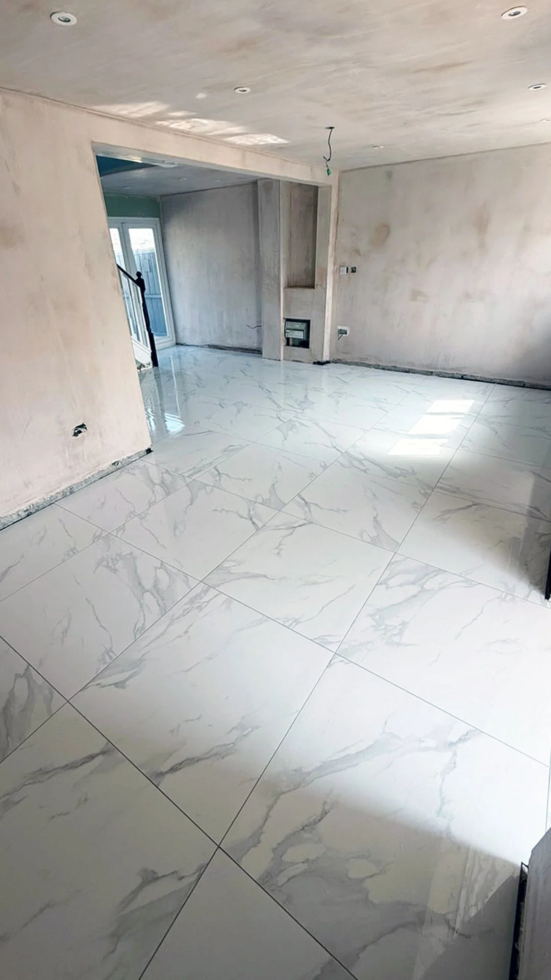 Thanks again LS Tiling Services for sharing this video and pics of their completed 31sqm flooring project. Here they’ve used our Statuario Mercury 80cm x 80cm polished marble effect tiles and silver grey grout.