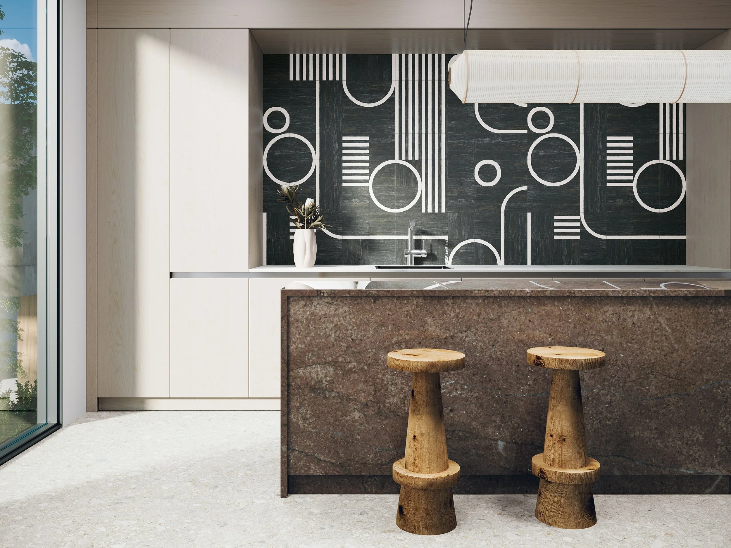 The tiles feature a natural-look finish that captures the authentic texture and warmth of raw materials like clay, stone and plaster.