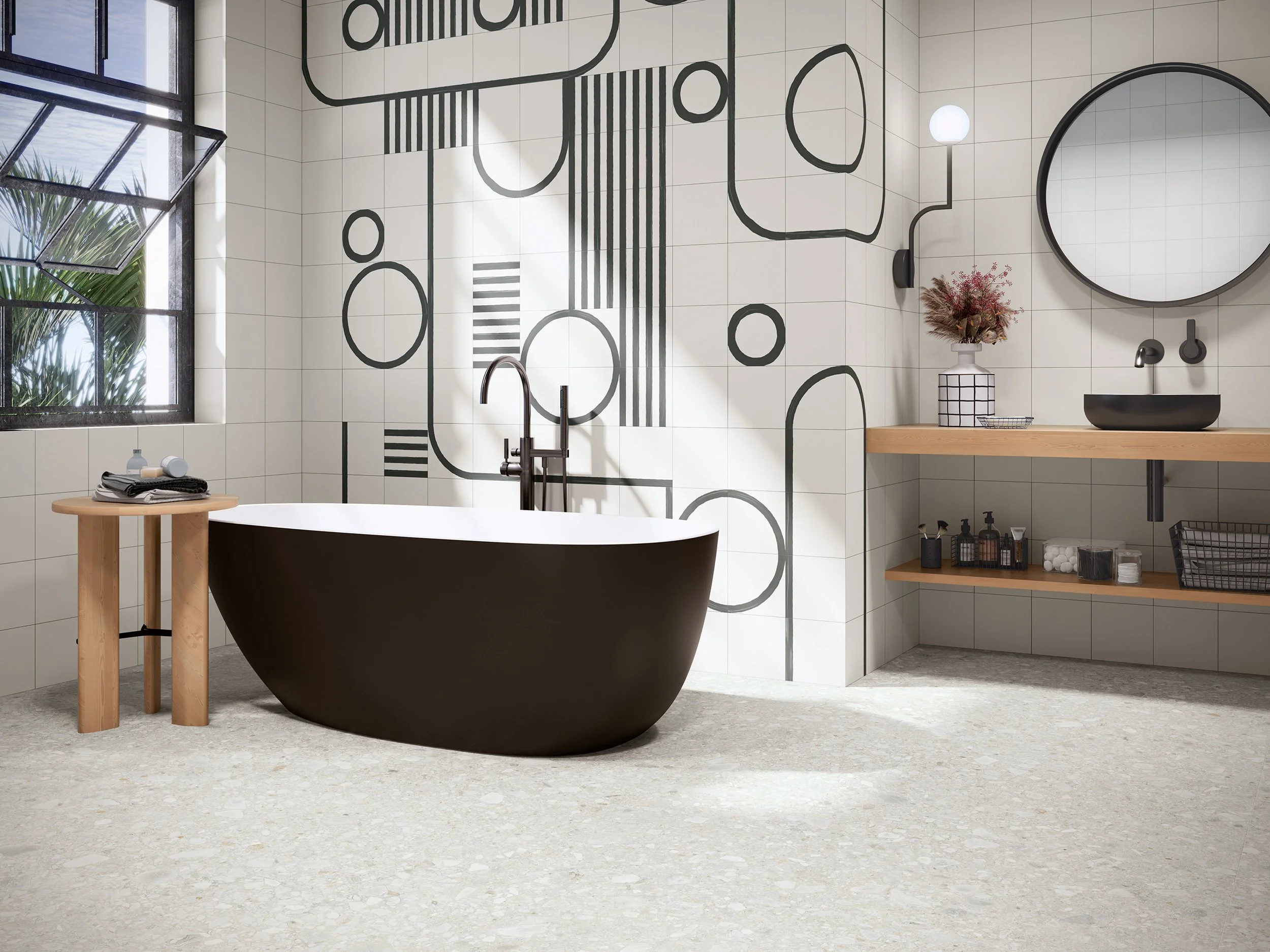 Get creative with the tiles from the Esencia Material collection. Mix and match the geometric and plain 20cm x 20cm tiles to create unique focal points on walls and floors. Whether you’re after soft curves or bold stripes, this versatile range gives you plenty of opportunities to design your own individual look.